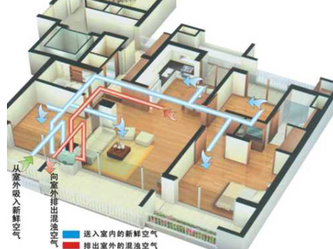 如今城市環(huán)境已受到不同程度的污染,單純的開窗通風(fēng)是很難達(dá)到室內(nèi)空氣清新潔凈,此時就需要機械通風(fēng)來實現(xiàn)。新風(fēng)系統(tǒng)采用主動換氣的方式來改善室內(nèi)的空氣質(zhì)量,在排出室內(nèi)的渾濁空氣的同時,送入室外的干凈空氣,從而達(dá)到室內(nèi)外空氣交換,減輕室內(nèi)空氣中的二氧化碳濃度,甲醛臭氧等等,使室內(nèi)空氣達(dá)到健康標(biāo)準(zhǔn)。