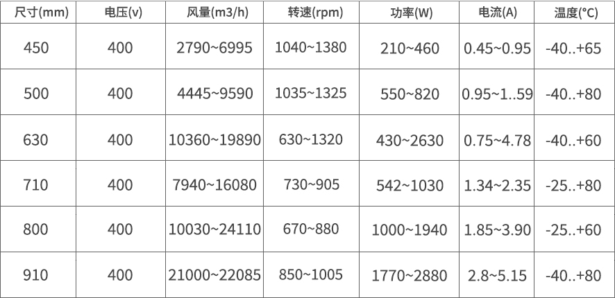 熱泵室外機常用AC/EC風機系列: