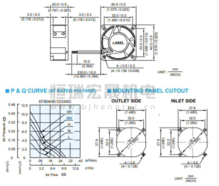 臺(tái)達(dá)Delta EFB0424VHD軸流風(fēng)機(jī)風(fēng)量結(jié)構(gòu)圖