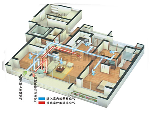 新風(fēng)系統(tǒng)是由送風(fēng)系統(tǒng)和排風(fēng)系統(tǒng)組成的一套獨(dú)立空氣處理系統(tǒng)。新風(fēng)系統(tǒng)是根據(jù)在密閉的室內(nèi)一側(cè)用專用設(shè)備向室內(nèi)送新風(fēng),再從另一側(cè)由專用設(shè)備向室外排出,在室內(nèi)會形成“新風(fēng)流動場”,從而滿足室內(nèi)新風(fēng)換氣的需要。