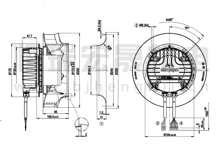 德國ebmpapst R3G250-RR09-P1離心風機結(jié)構圖