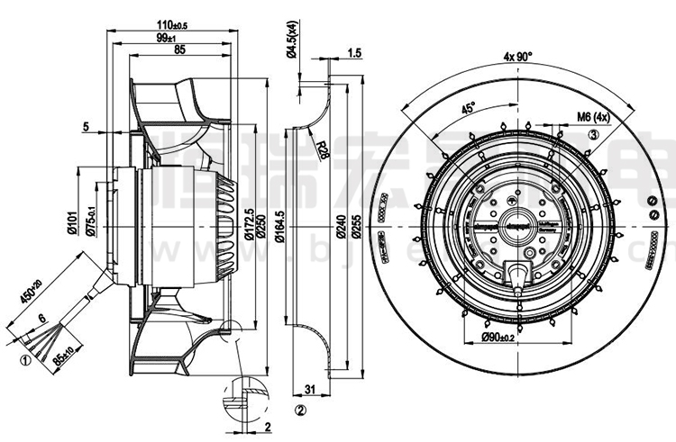 德國ebmpapst R2E250-RC08-01風(fēng)機結(jié)構(gòu)圖