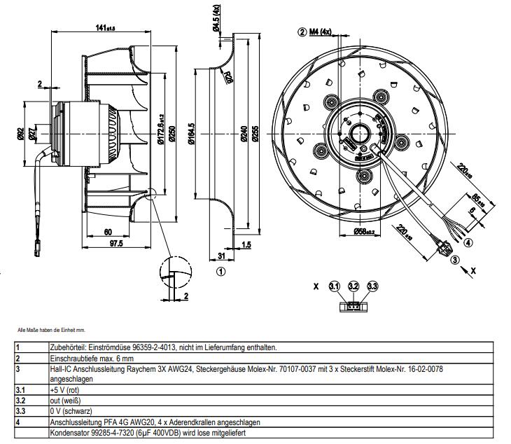 德國ebmpapst R2E250-AW50-13離心風機結構圖