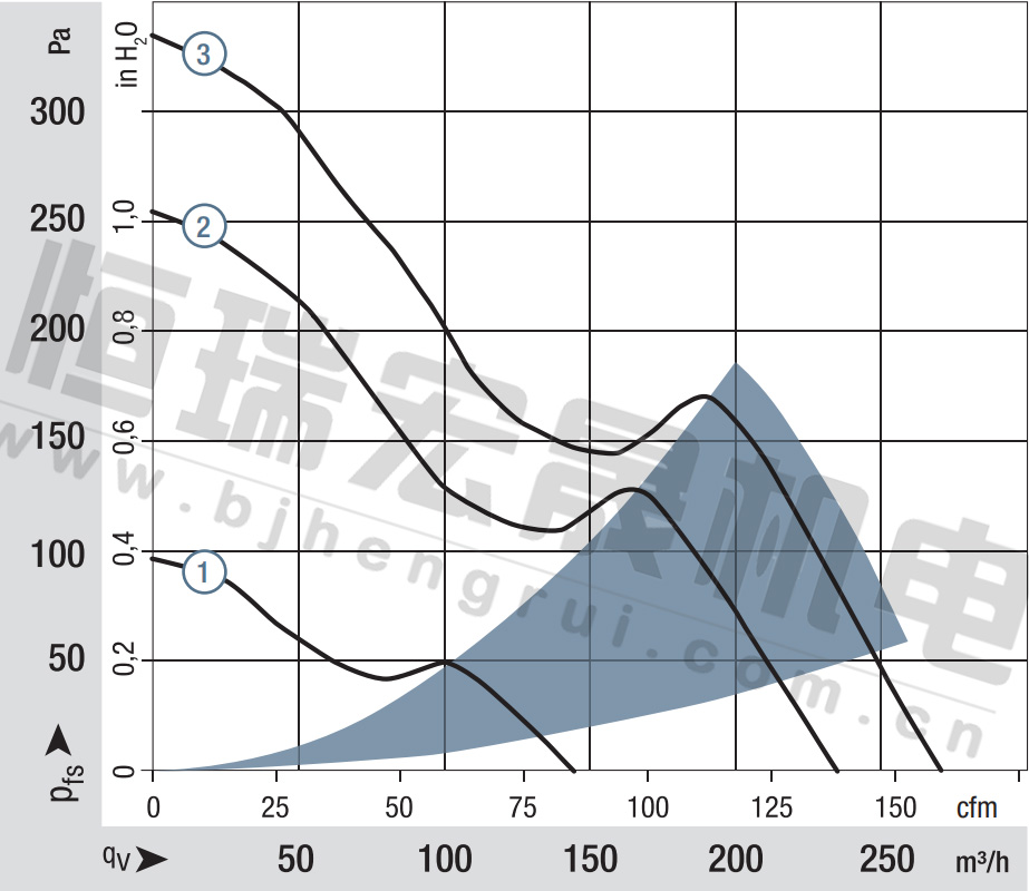 德國ebm全新3252J/2H3P 3254J/2H3P緊湊型風機曲線圖