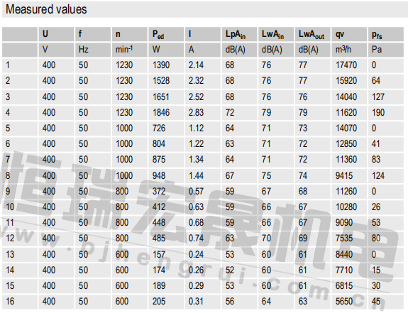 原裝軸流ebm風(fēng)機(jī)A3G630-AS21-01的曲線圖