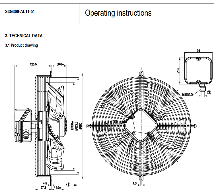 德國ebm全新S3G300-AL11-51軸流風機規(guī)格圖
