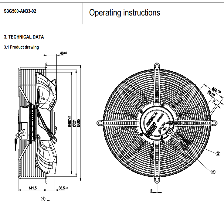原裝正品軸流ebm風(fēng)機(jī)S3G500-AN33-02的規(guī)格圖
