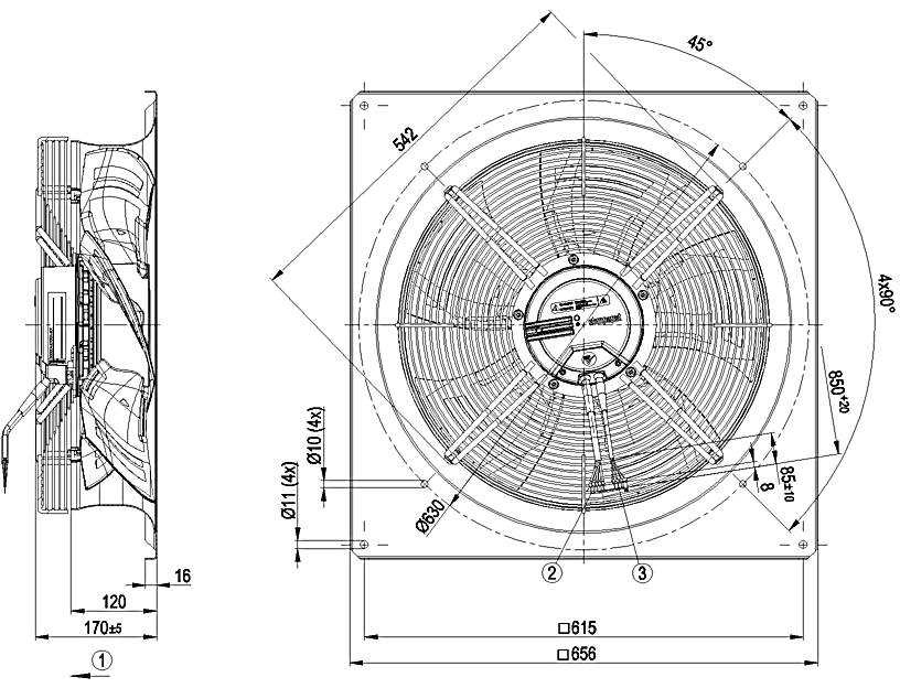 原裝正品軸流ebm風(fēng)機(jī)W3G500-GM56-21的規(guī)格圖