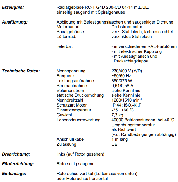 徑向鼓風(fēng)機RC-T G4D 200-CD 04-14 mLUL,單側(cè)吸氣,帶螺旋外殼