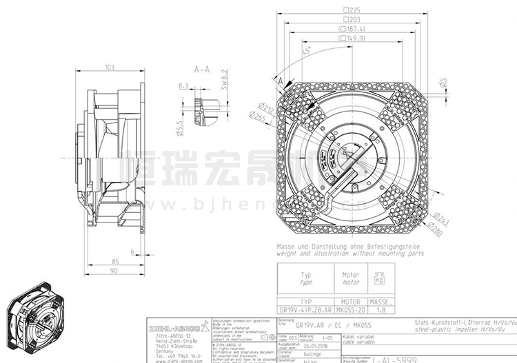 施樂百ziehl-abegg 離心風(fēng)機 GR19V-4IP.Z8.AR