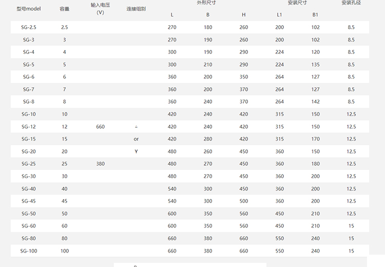 SG系列低壓三相干式變壓器 SG-5 SG-6 SG-7 SG-8 SG-10 SG-12 SG-15 SG-20 SG-25 SG-30 SG-40 SG-45 SG-50 SG-60 SG-80 SG-100