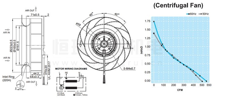 UF220APA23H2C2A FULLTECH 福佑風機結構風量圖: